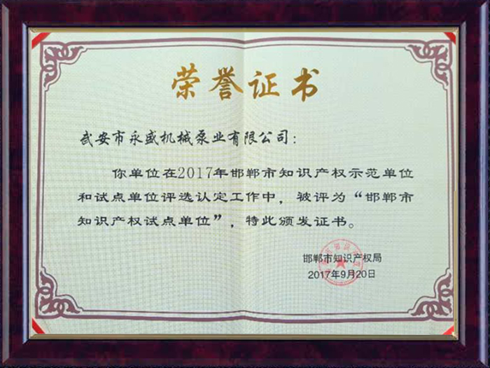 知識(shí)產(chǎn)權(quán)試點(diǎn)單位證書